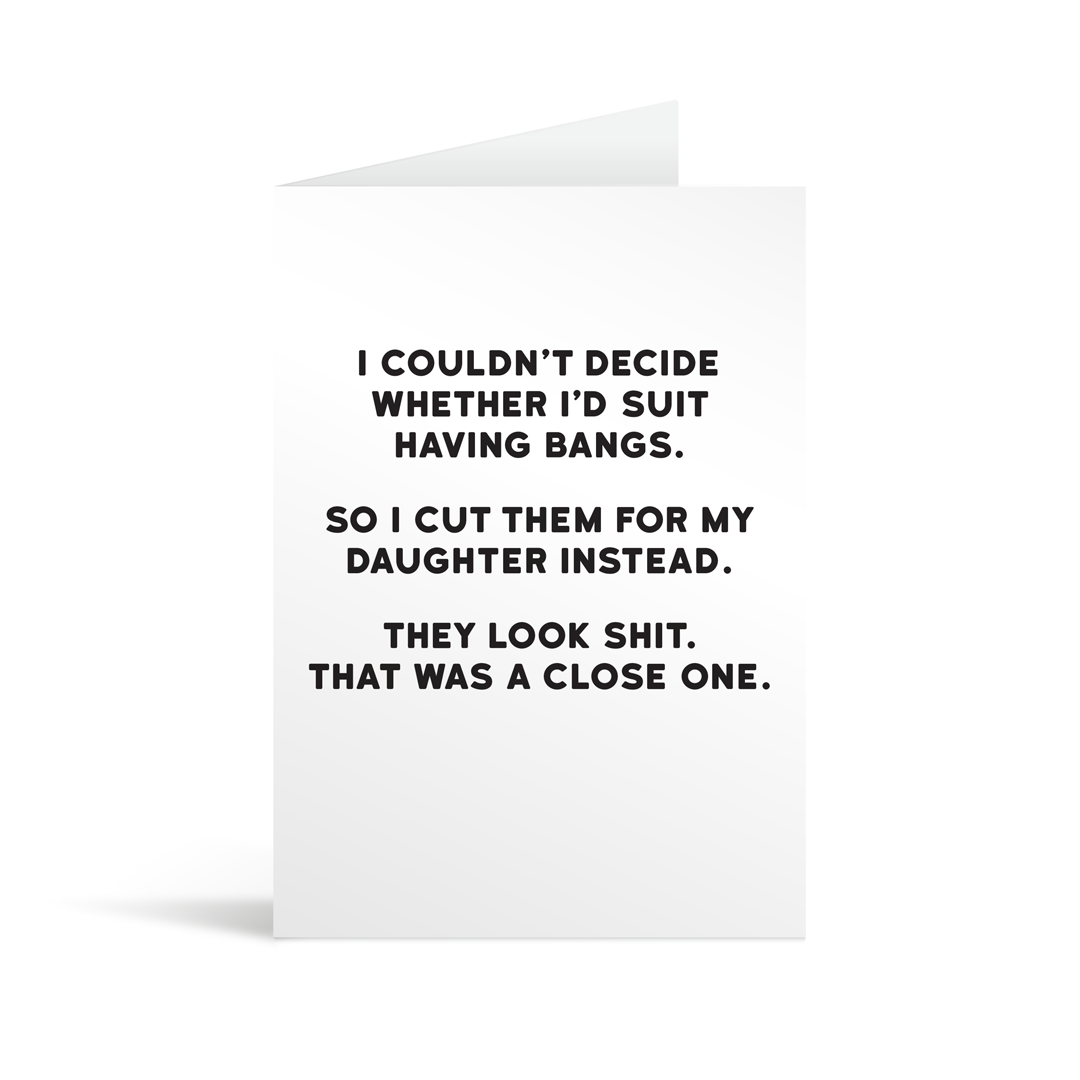 Sometimes sweary always funny, a card from the black and white Holy Flaps range. Rude, salty and observational, a warning to anyone considering a fringe. (US version also available)